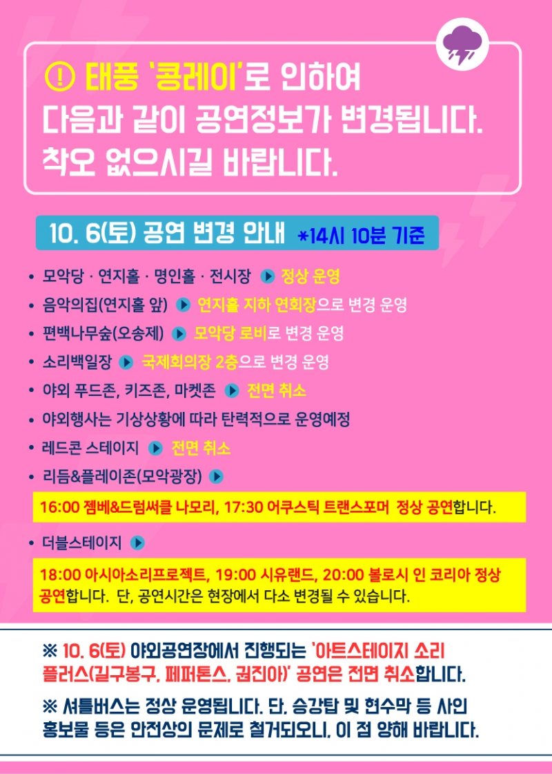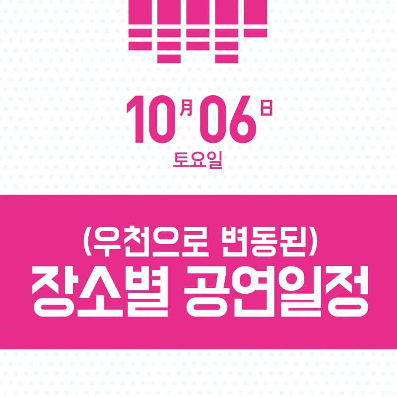 10.6(토) 우천으로 변동된 장소별 일정표 재안내