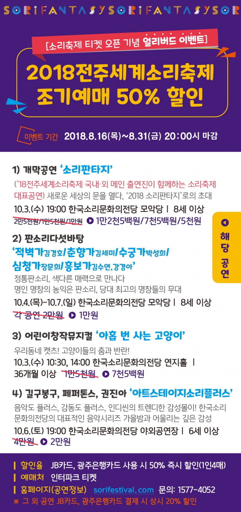 소리축제 티켓 오픈기념 얼리버드 이벤트 [JB카드, KJ카드 결제 시 조기 예매 할인 이벤트]