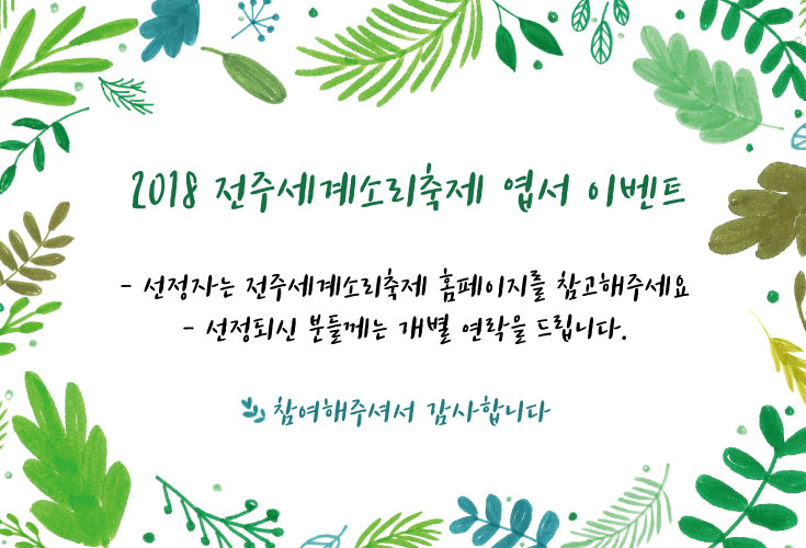 2018 전주세계소리축제 엽서이벤트 선정자 발표