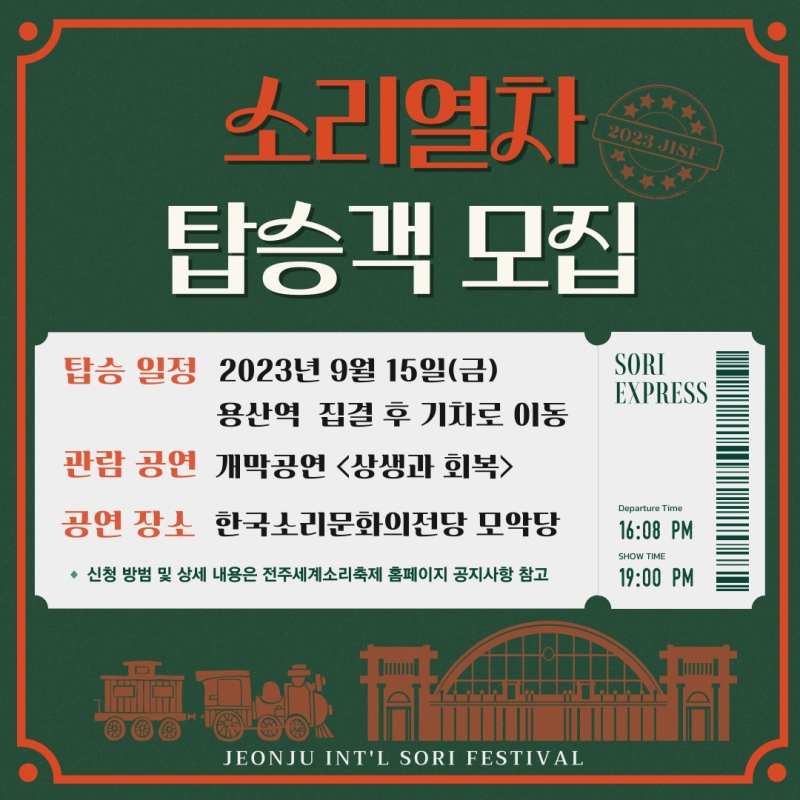 2023 전주세계소리축제 소리축제열차 탑승객 모집 안내