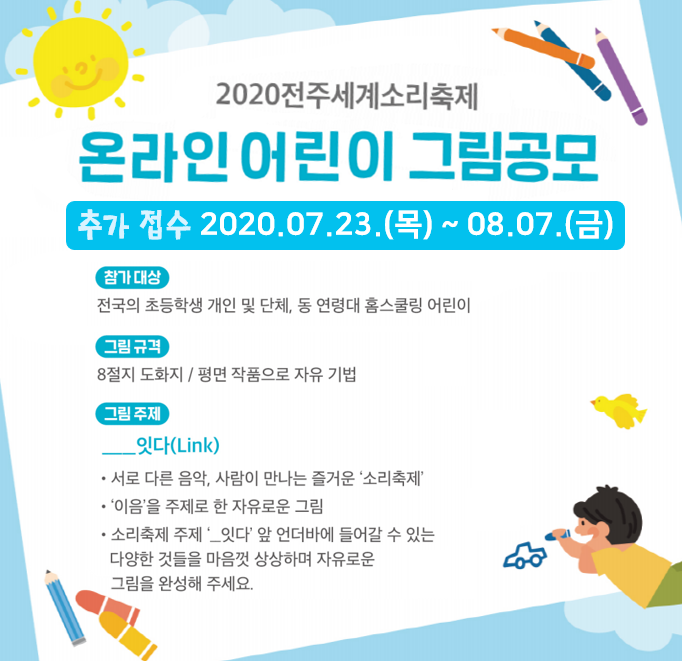 [2020 전주세계소리축제 '온라인어린이그림공모' 진행 - 공모기간연장 7월 23일 - 8월 7일]
