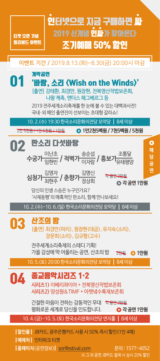 소리축제 티켓 오픈기념 얼리버드 이벤트 [JB카드, KJ카드 결제 시 조기 예매 할인 이벤트]