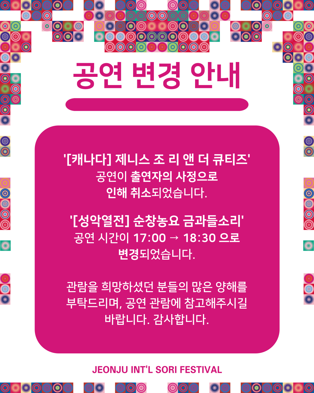 공연 변경 안내
