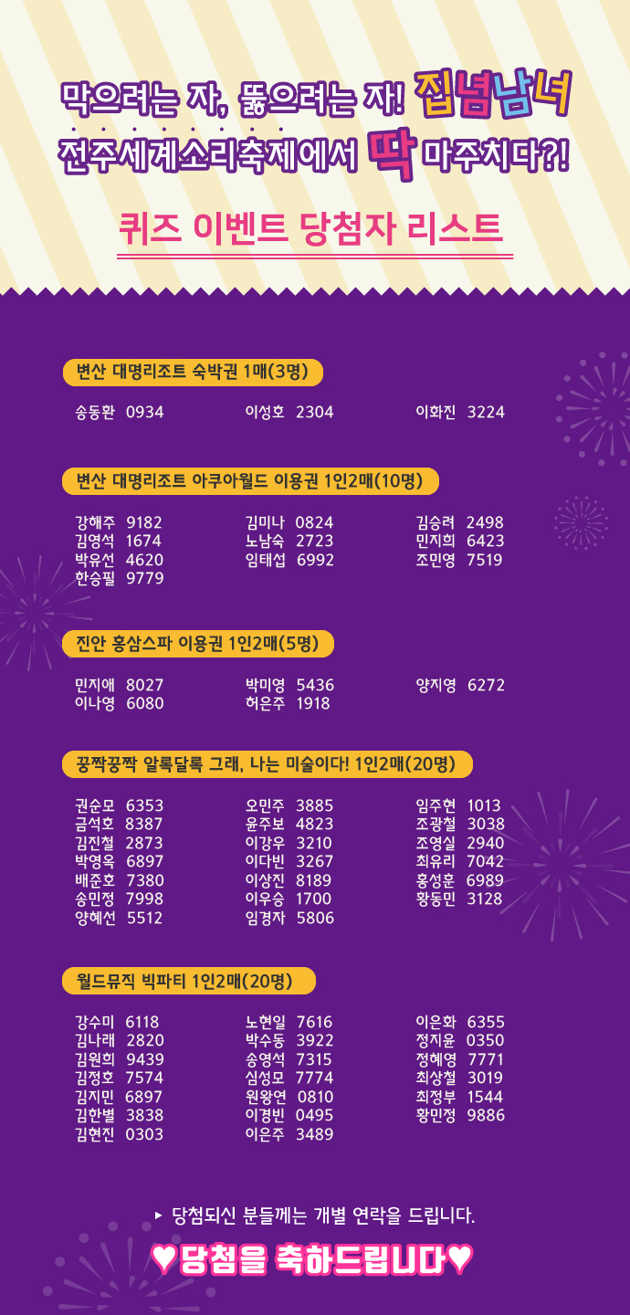 대명리조트 X 전주세계소리축제 [소리축제 공연보고 대명리조트 놀러가자!] 이벤트 당첨자 발표