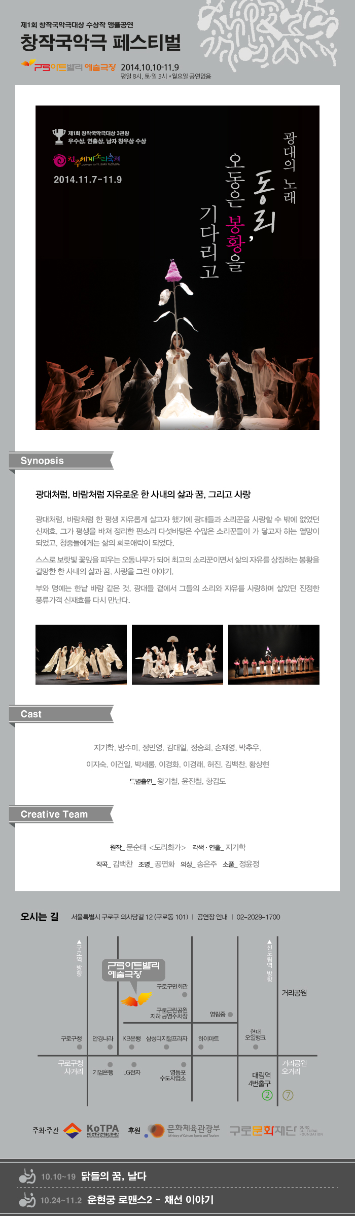 광대의 노래〈동리, 오동은 봉황을 기다리고〉- 창작국악극페스티벌에서 공연합니다.