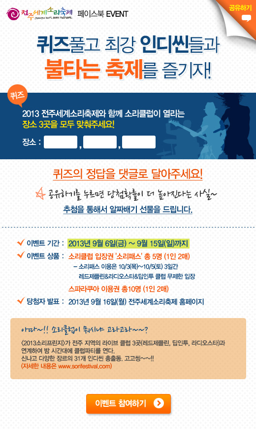 [페이스북 이벤트]퀴즈풀고 최강 인디씬들과 불타는 축제를 즐기자!