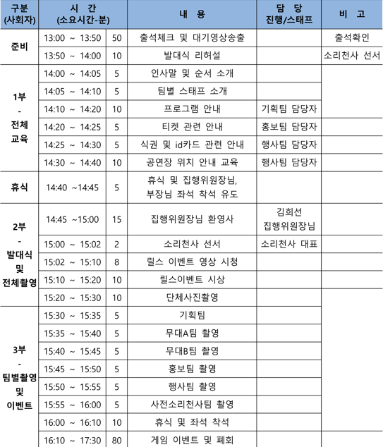 발대식 일정표 공유하니 다들 확인해주세요!!